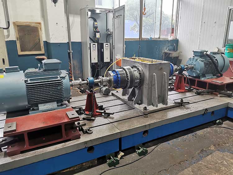 減速機(jī)試驗(yàn)臺(tái)是檢測(cè)減速機(jī)整機(jī)性能指標(biāo)的試驗(yàn)裝置。該裝置測(cè)試減速機(jī)的各種性能參數(shù),包括:減速機(jī)輸入轉(zhuǎn)矩、轉(zhuǎn)速、功率,輸出轉(zhuǎn)矩、轉(zhuǎn)速、功率,效率,溫升,振動(dòng)、噪音等。該試驗(yàn)臺(tái)能夠滿足各類減速機(jī)性能測(cè)試,為減速機(jī)的生產(chǎn)制造、維修和現(xiàn)場(chǎng)應(yīng)用提供準(zhǔn)確的參數(shù)指標(biāo)。